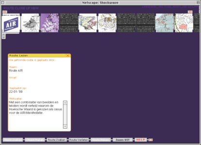 DataCloud 1.0, aka Datawolk Hoeksche Waard (DWHW) has been set up as a community tool to collect, discuss and browse both ‘factual’ (figures, images) and more ‘fuzzy’ data (stories, sounds) about the physical transformation of the Hoeksche Waard – an area close to Rotterdam. DataCloud-1.0 has been awarded the Dutch National Millennium Prize for projects in the combined fields of science and the arts (November 2000). The prize money has been spent developing a version 2.0.