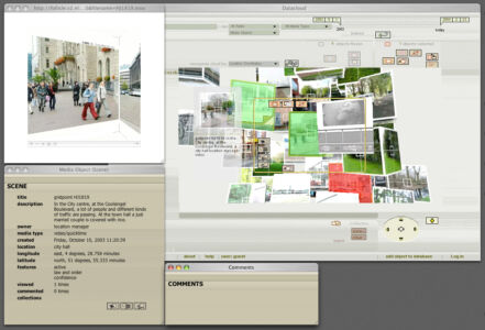 By searching inside the information space, the 3d constellation of items will fold and transform, revealing the different topologies of data ‘hidden’ in the ‘cloud’. One can use the DataCloud to browse through the archive, explore the different layers of information and reorganize them to suit personal preference and particular interest. Apart from passive viewing and navigation through the data objects, the application also provides users the opportunity to reflect and comment upon the content. As such, the DataCloud offers possibilities that go beyond a search environment; it can for instance be used as tool to support the broad based dialogue (social, urbanistic, strategic and political) that is needed in the development of complex issues like urban development.
