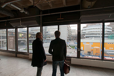 view from the exhibition site at the ongoing reconstruction of the 1970s shopping center Hoog Catharijne |